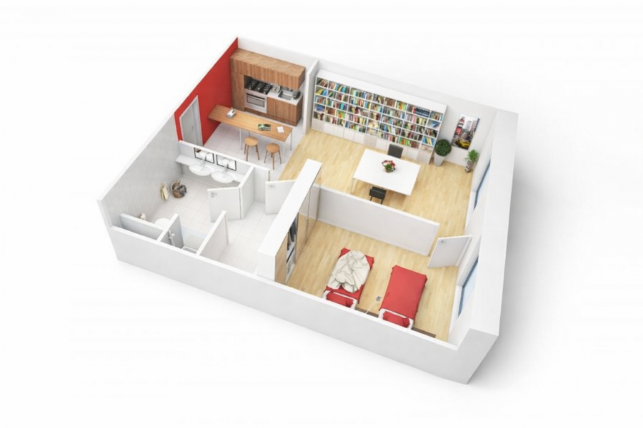 - Surface habitable : +/-46 m2