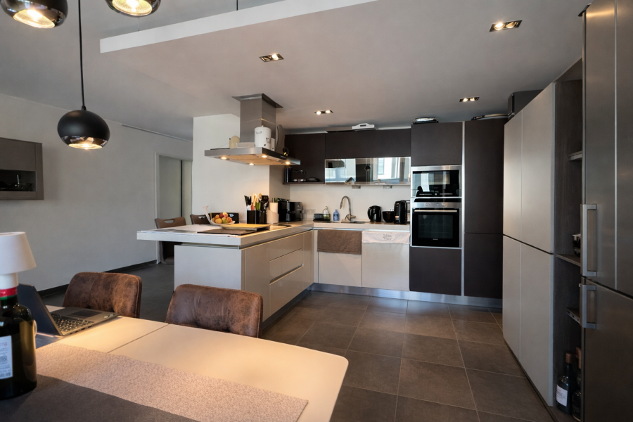 - Grand espace de vie lumineux d'environ 50 m² avec cuisine ouverte entièrement équipée