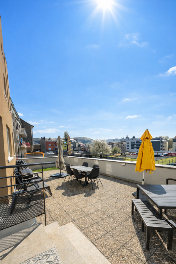 Appartement 3 chambres avec grande terrasse à KaylSitué au cœur de Kayl, dans une résidence avec ascenseur (2010), ce spacieux appartement de ±108 m² vous séduira par ses volumes, sa luminosité et surtout son exceptionnelle terrasse de ±80 m².