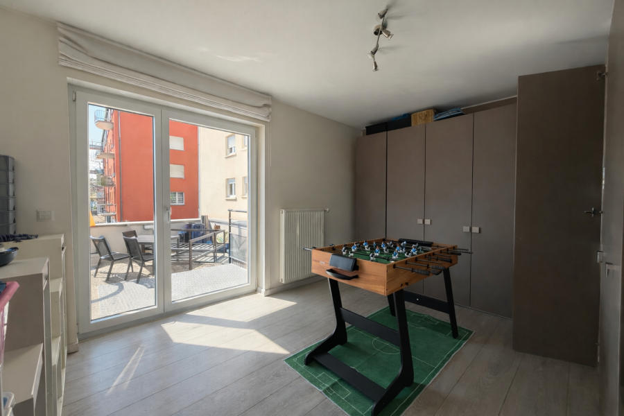 L'une des chambres offre un accès direct à la grande terrasse, véritable atout du bien.